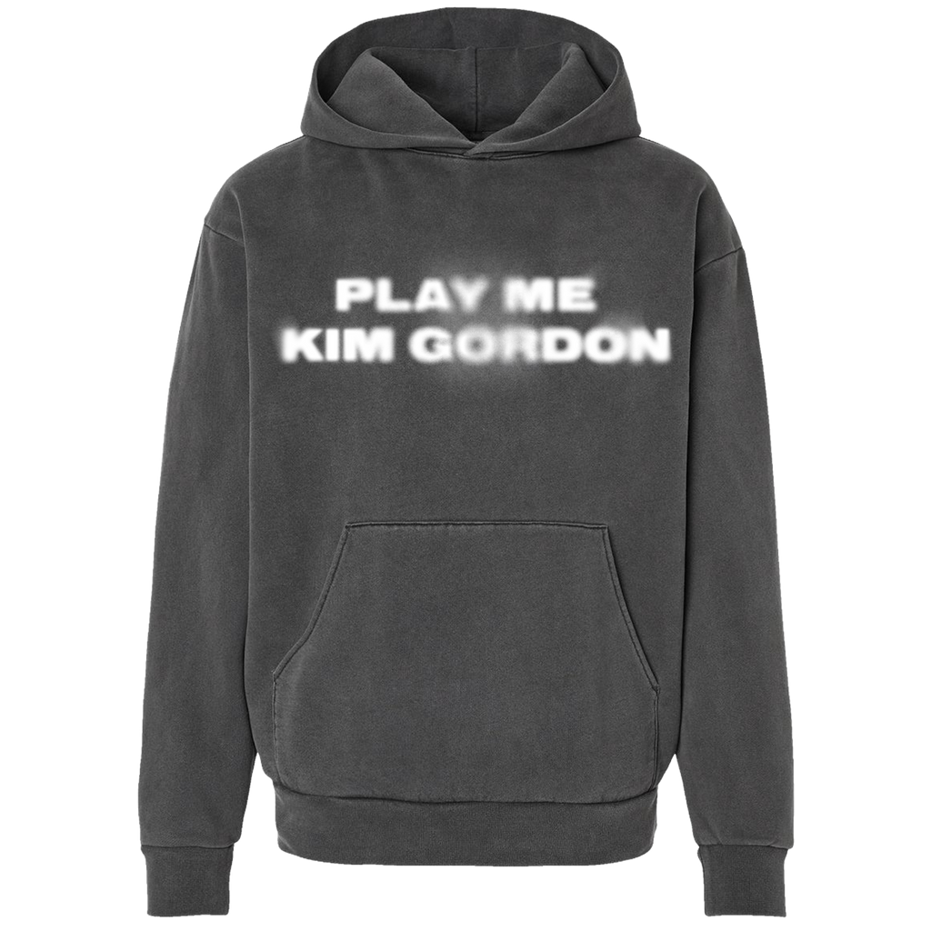 Play Me design printed on a faded black heavyweight Independent Trading Company hoodie printed with puffy white ink.